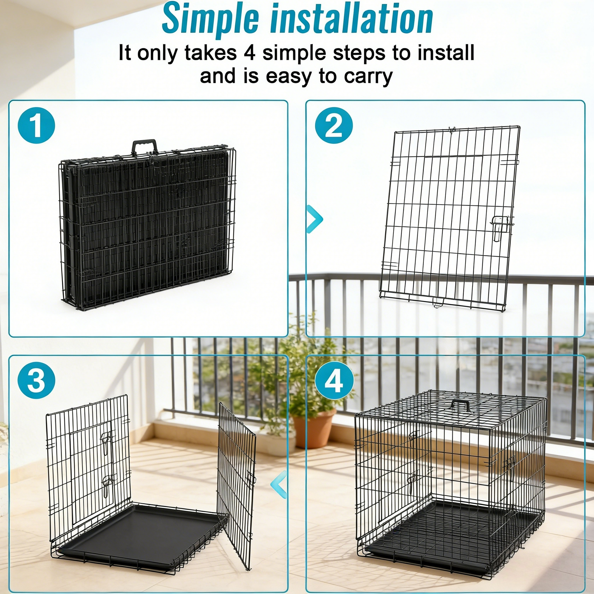 - 🐕【Easy to Clean】: the dog cage includes a durable leak-proof ABS Composite tray that will not stain, warp, corrode or retain pet odors. The pet cage bottom pan features an integrated Lip around the perimeter, to contain any mess from spilling outside the dog kennel. Dog cage with tray pet crate metal dog cage.