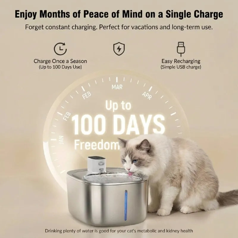 Don't let dead batteries disrupt hydration. Achieve a full charge in just 2 hours for months of reliable, round-the-clock operation—perfect for busy pet parents and travel.